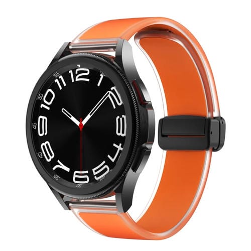 Correa de Silicona para Samsung Galaxy Watch6/5/4 con Hebilla Negra Magnética Translúcida (Naranja)