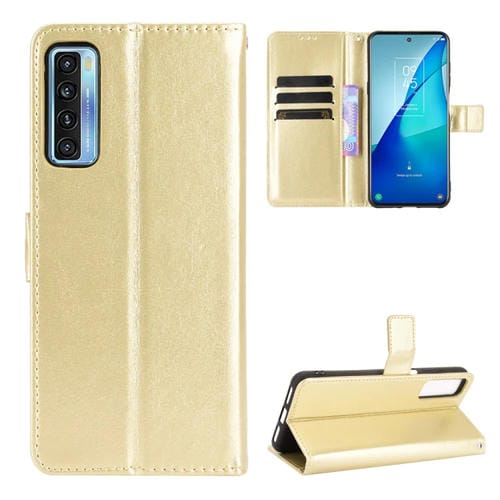 Funda de Cuero Horizontal Flip para TCL 20 5G y TCL 20S Crazy Horse con Soporte, Ranuras y Cordón (Oro)