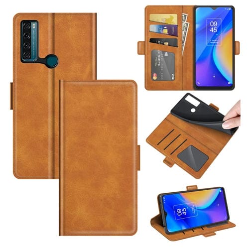 Funda de Cuero para TCL 20 Se con Hebilla Horizontal, Soporte y Ranuras para Tarjeta y Billetera (Amarillo)