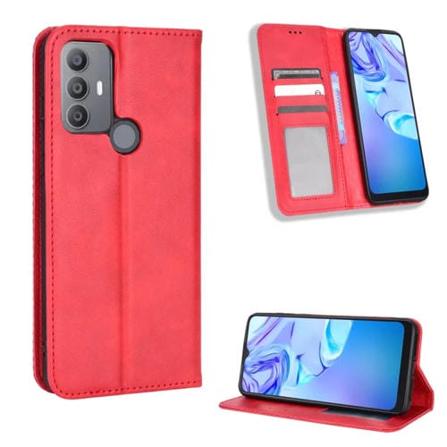 Funda para TCL 30 Se / 30 E / 306 / Sharp Aquos V6 con Hebilla Magnética y Textura Retro de Cuero (Rojo)