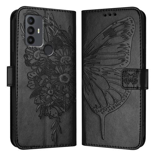 Funda de Teléfono para TCL 30 Se Cuero con Mariposa en Relieve (Negro)