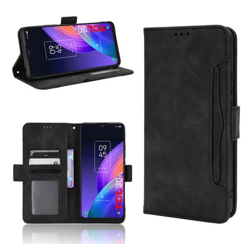 Funda de Cuero para TCL 30 XL Skin Feel con Ranuras para Tarjetas (Negro)