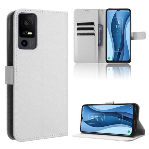 Funda para TCL 40 Xe 5G de Cuero con Textura de Diamante (Blanco)