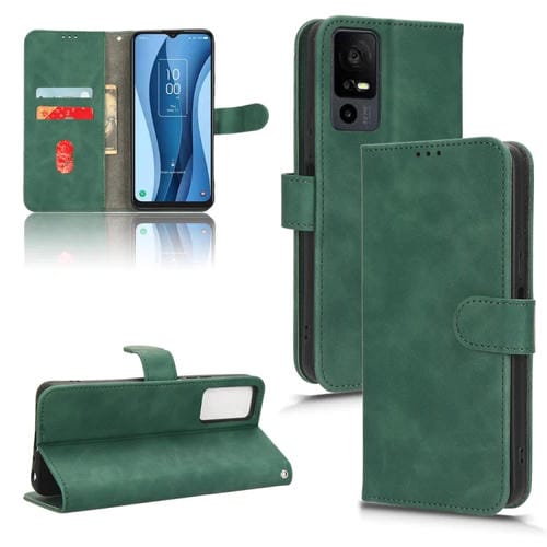 Funda de Cuero con Tapa Magnética para TCL 40 Xe 5G Skin Feel (Verde)