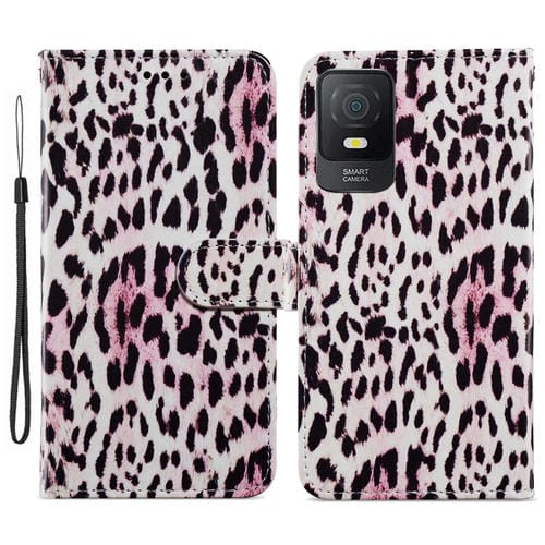 Funda de Cuero para TCL 403 con Tapa Horizontal y Patrón Leopardo