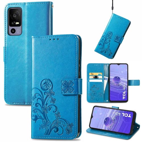 Estuche para TCL 40R de Cuero con Hebilla en Relieve y Cierre de Cuatro Hojas (Azul)