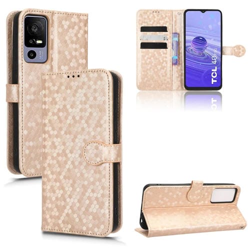 Funda de Cuero para TCL 40R con Textura Punto de Panal (Oro)