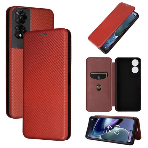 Funda de teléfono TCL 50 5G Cuero con Tapa y Textura de Fibra de Carbono (Marrón)