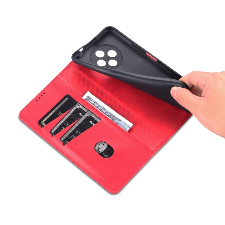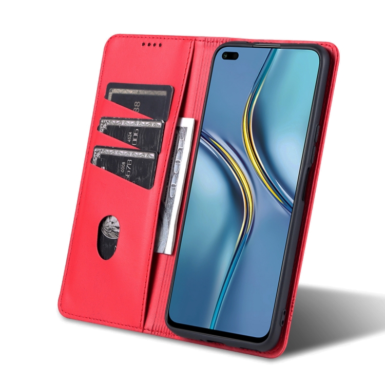 Funda Flip Leather Case para U-Magic Disfrute 50 Plus Azns Magnetic Barry (Rojo)