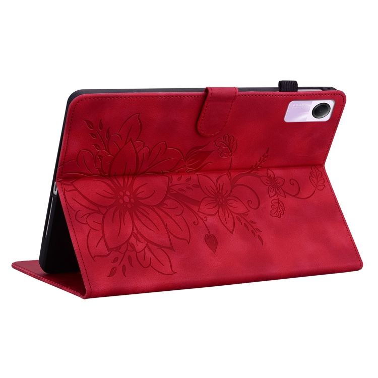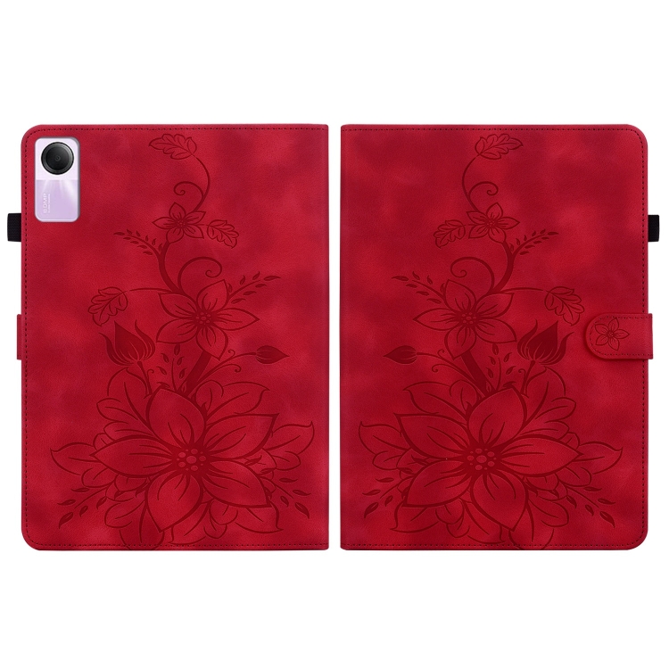 Para Xiaomi Redmi Pad Se Lily Funda para Tableta de Cuero En Relieve (Rojo)