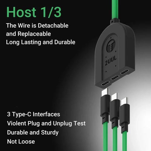 - Longitud de 1 metro, tres interfaces tipo C, diseño de línea ancha sin nudos, Conector estable y duradero