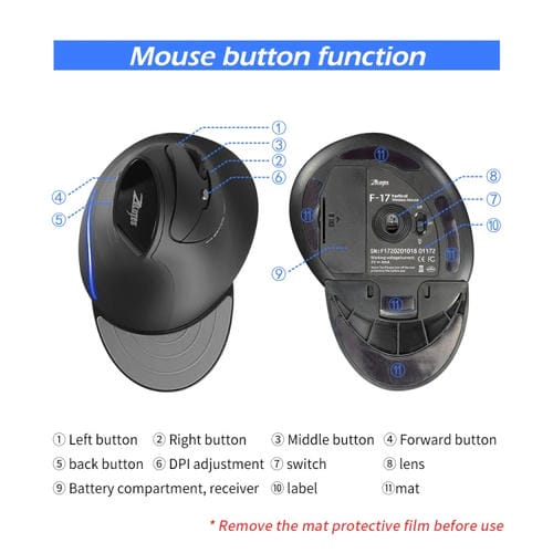 - 1x Ratón Inalámbrico Zelotes F17 con Agarre Vertical Ergonómico y 6 Botones (Negro)
