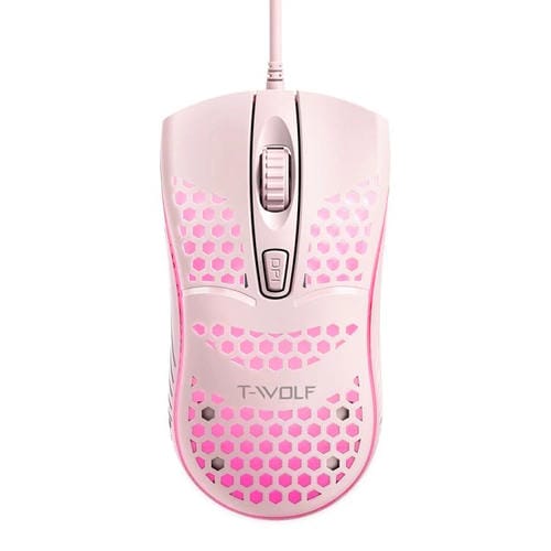 Ratón para juegos USB con cable y diseño hueco ergonómico T-WOLF V15 Honeycomb con iluminación RGB para PC, oficina y hogar (rosa)
