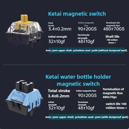 - Compatible con ejes magnéticos Ketai Aquarius, TTC Magneto, Gateron Magnetic White, Magnetic Jade y otros ejes magnéticos descendentes de polo N