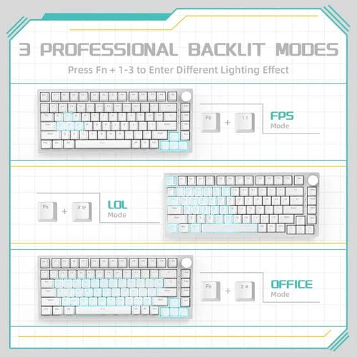 1. 3 modos de retroiluminación profesionales: pulse Fn+1-3 para acceder a diferentes modos de efectos de iluminación