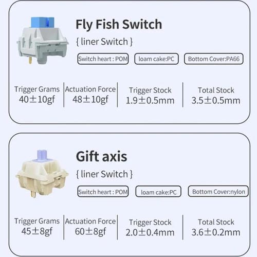 - Disposición de 87 teclas, estructura de junta con cinco capas de absorción acústica, interruptores hot-swappable compatibles con ejes MX de 3 y 5 pines, efectos RGB con 20 grupos preestablecidos, Batería de 4000 mAh, peso aproximado de 970 g, dimensiones de 37 x 14,8 x 2,1 cm