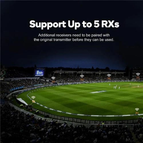 - Alcance Inalámbrico de hasta 400 metros, frecuencia de 5 GHz, codificación de video H.265, latencia 0,05 segundos, dos salidas HDMI en receptor, control remoto IR (30 KHz ~ 60 KHz), Alimentación USB-C 5 V 2 A, estándar HDMI 1.3 y HDCP 1.4