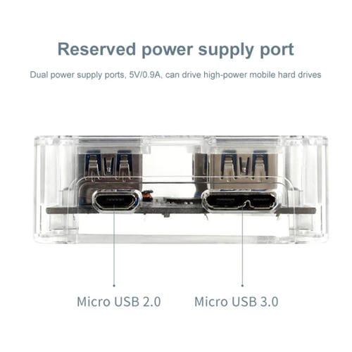 - Velocidad de transmisión de datos de hasta 5 Gbps; tamaño compacto de 57x57x20 mm; voltaje de Carga de 5V/0.9A; incluye Puerto de fuente de Alimentación para Soporte de Discos duros externos de alta potencia
