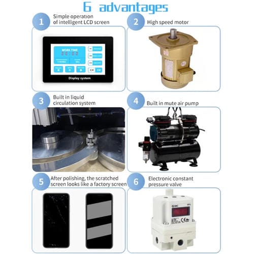 - Permite la Reparación eficiente de Pantallas de Teléfonos Móviles con rayones, restaurando su apariencia Original