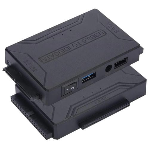 Este convertidor USB 3.0 a SATA/IDE permite conectar discos duros IDE/SATA de 2,5"/3,5" a su ordenador mediante el puerto USB.Es la herramienta perfecta para duplicar, copiar, realizar copias de seguridad o transferir grandes cantidades de datos de un disco a otro.