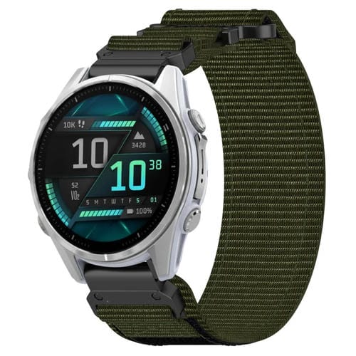 Correa de reloj de liberación rápida de nailon con cierre de velcro de 20 mm y correa de reloj AMOLED de 43 mm para Garmin Fenix 8 (verde militar)