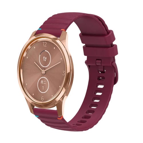 Correa de Silicona Garmin Move Luxe 20mm con Puntadas Onduladas y Puntos (Rojo Vino)