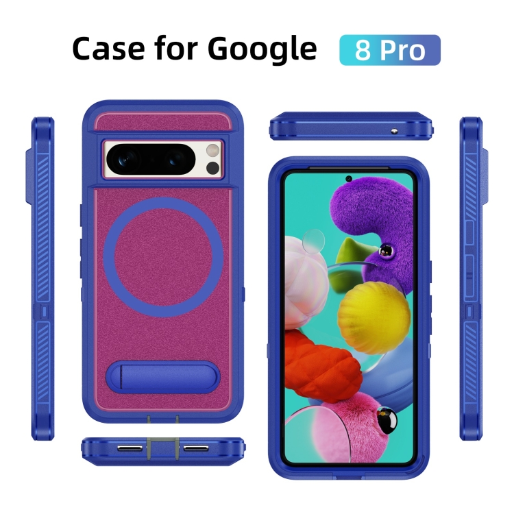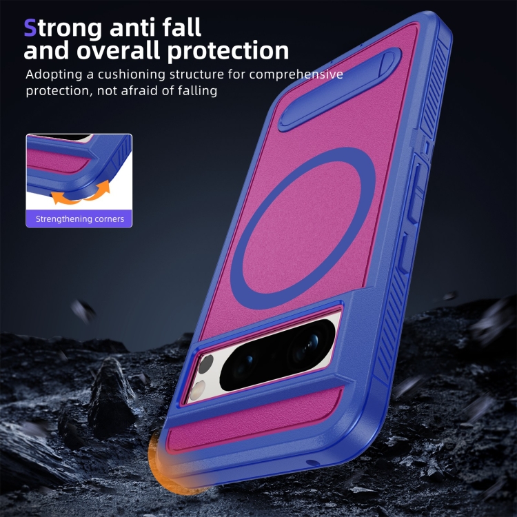 Estuche híbrido TPU y PC con Soporte Magsafe para Google Pixel 8 Pro (Azul, Rosa y Rojo)