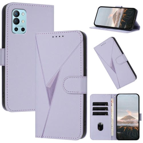 Funda de Cuero para OnePlus 9R con Cierre de Hebilla y Diseño Triangular (Morado Claro)
