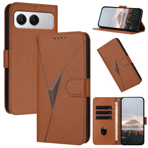 Funda de Cuero para OnePlus Nord 4 con Cierre de Hebilla y Diseño Triangular (Marrón)