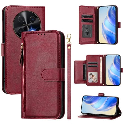 Funda de Cuero con Cremallera y Ranuras para Tarjetas para Huawei Nova 12I 4G (Rojo Oscuro)