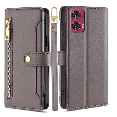 Funda de Cuero con Cremallera y Textura de Oveja para Motorola Edge 50 Fusion 5G (Gris)