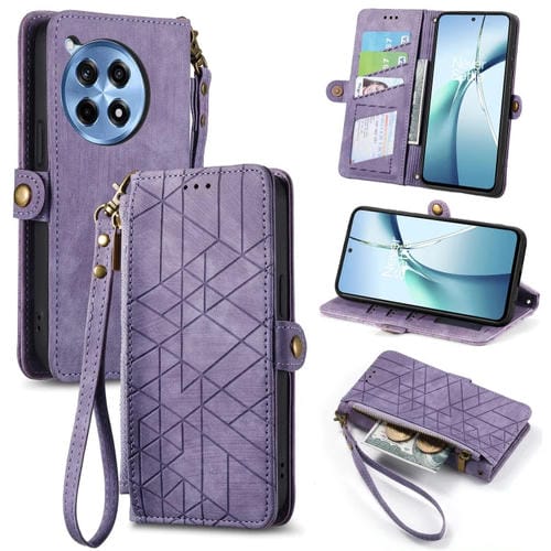 Funda de Cuero para OnePlus Ace 3 Pro con Hebilla Lateral y Cierre Geométrico (Morado)