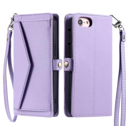 Funda de Cuero para iPhone 16E con Ranura para Tarjetas y Cordón (Morado)