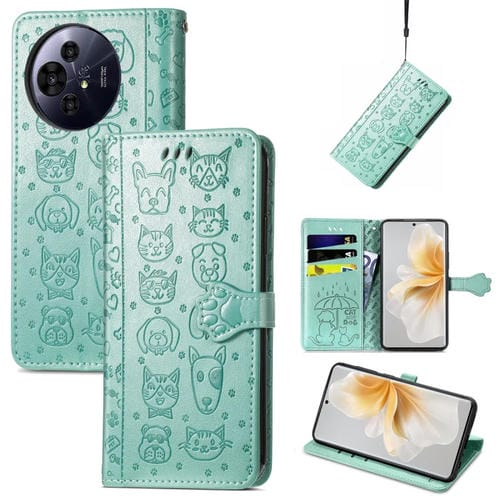 Funda de Cuero Nxtpaper con Relieve de Gato y Perro para TCL 50 Pro (Verde)