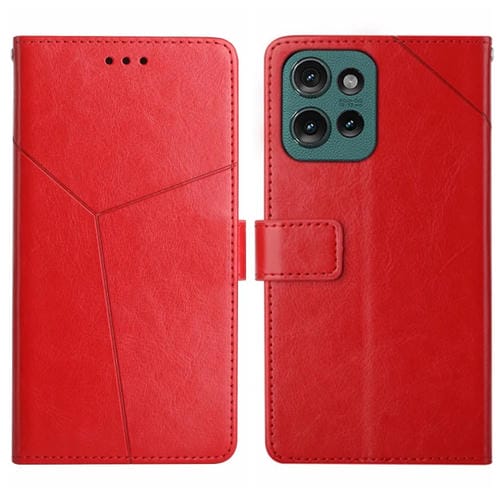 Funda de Cuero con Tapa y Patrón en Forma de Y para Motorola Moto G 5G 2025 Ht01 (Rojo)