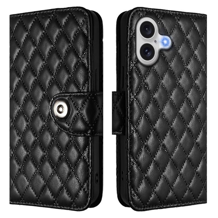 Funda de cuero con textura rómbica y cordón para iPhone 17 (negra)