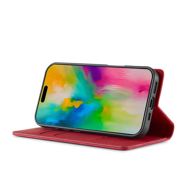 Funda de cuero de microfibra LC.IMEEKE con fuerte magnetismo para iPhone 17 (roja)