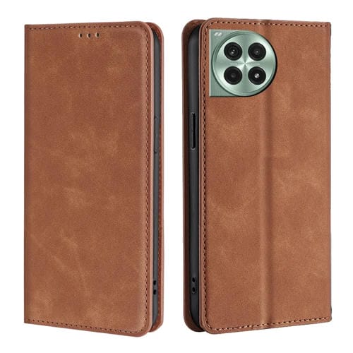 Funda de Cuero Magnética con Tacto de Piel para OnePlus Ace 3 Pro 5G (Marrón Claro)