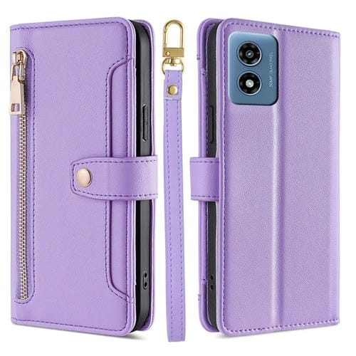 Funda de Cuero Tipo Billetera con Cremallera y Textura de Oveja para Motorola Moto G 5G (2024) (Morado)