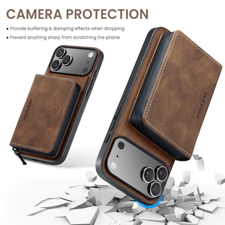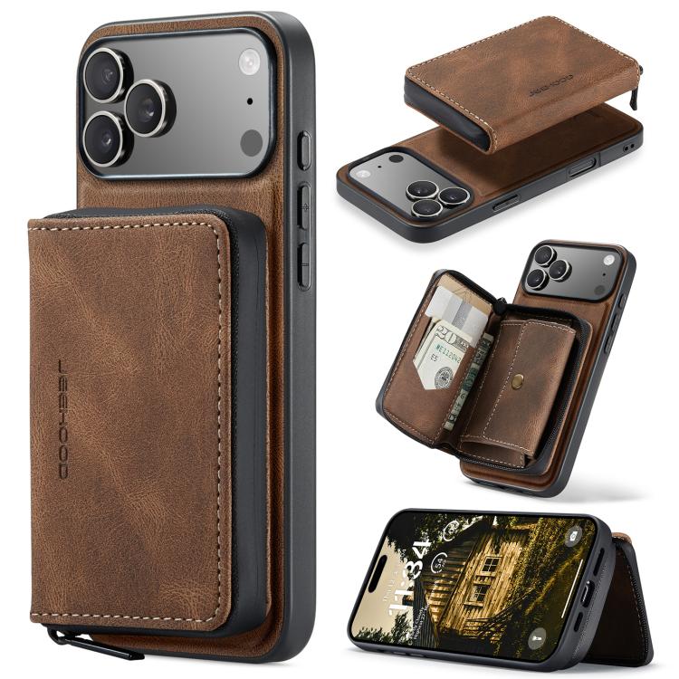 Funda de piel con cremallera magnética horizontal tipo libro JEEHOOD J02 para iPhone 17 Pro Max (marrón)