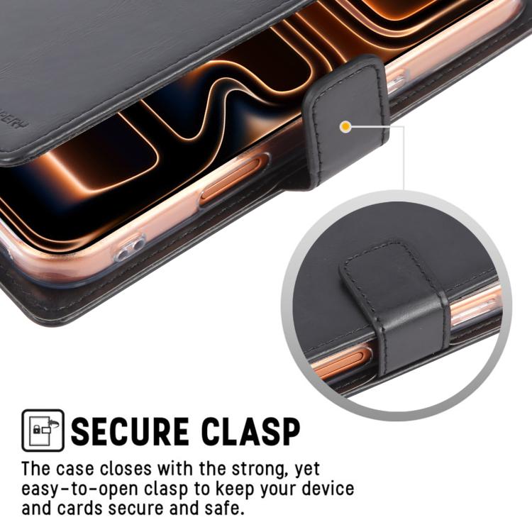 Funda de piel texturizada Crazy Horse GOOSPERY BLUE MOON para iPhone 17 Pro (negra)
