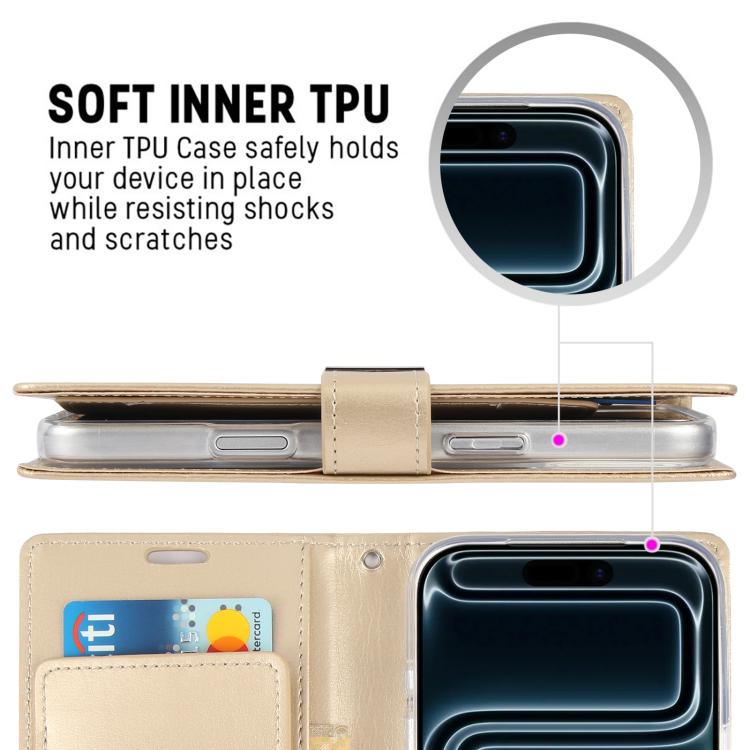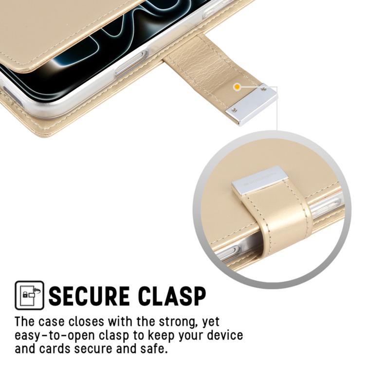 Funda de piel texturizada Crazy Horse GOOSPERY RICH DIARY para iPhone 17 Pro (Dorada)