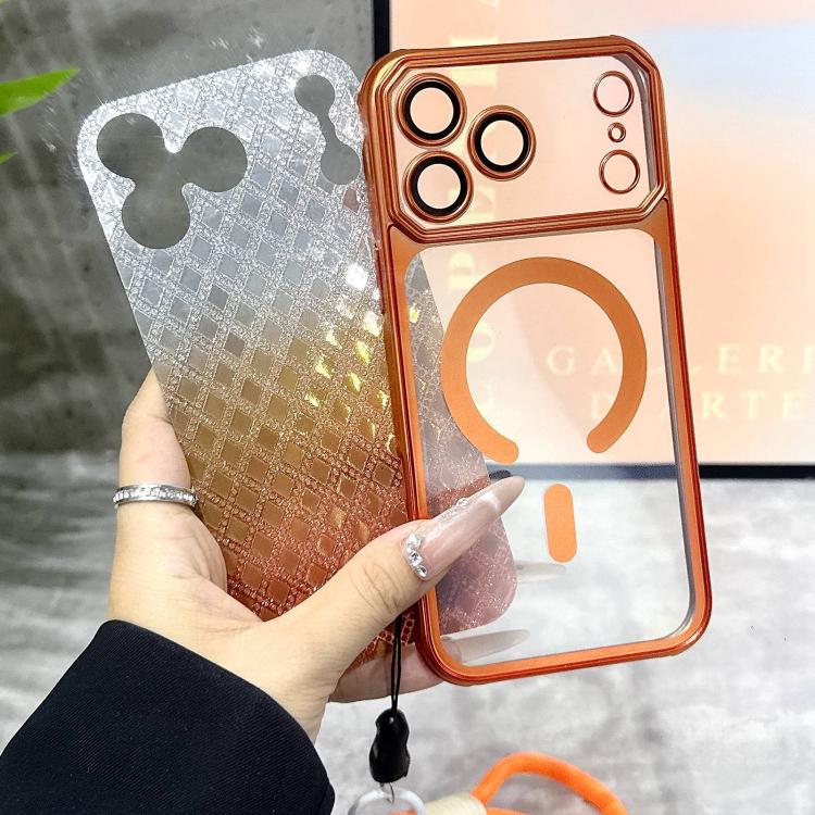 Funda de TPU MagSafe con ventana grande, diseño de rombos degradados, mate, galvanizada y con correa de mano para iPhone 17 Pro Max (rosa)