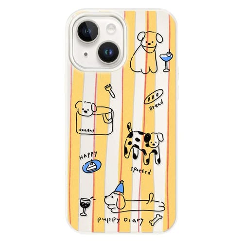 Funda híbrida TPU y PC iPhone 15 Plus línea de dos colores perro blanco