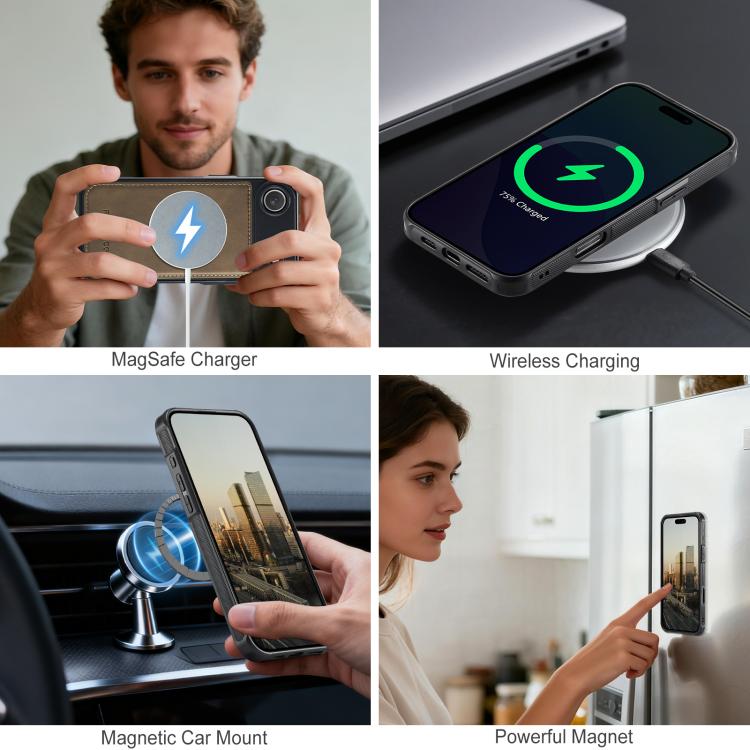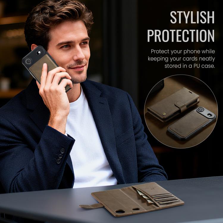 Funda magnética MagSafe AutSpace A05 2 en 1 con textura de piel de becerro retro para iPhone Air (marrón)