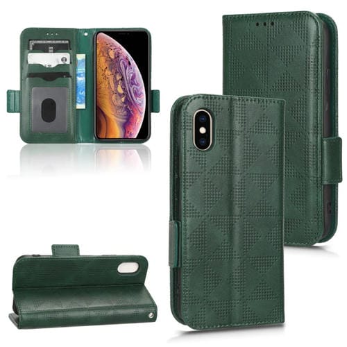 Funda para Teléfono Cuero iPhone Xs Max Triángulo Simétrico (Verde)