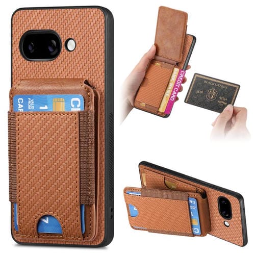 Funda Tipo Cartera Fibra de Carbono con Tapa Vertical para Google Pixel 9A (Marrón)