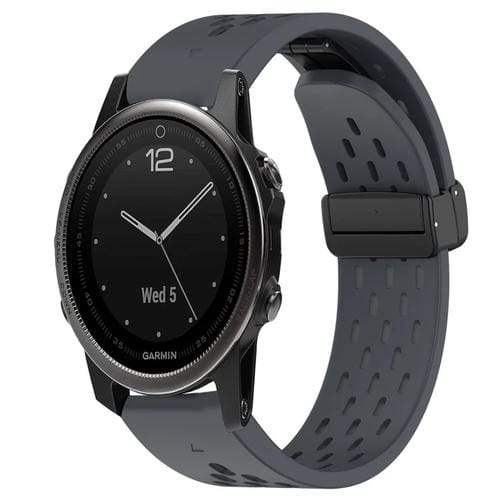 Correa de Reloj de Silicona para Garmin Fenix 5S con Orificio y Hebilla Plegable de 20mm (Gris Oscuro)