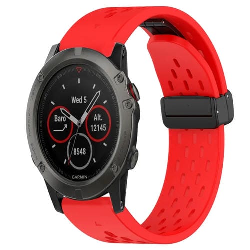 Correa de Silicona para Garmin Fenix 5X Sapphire 26mm con Orificio para Hebilla Plegable (Rojo)