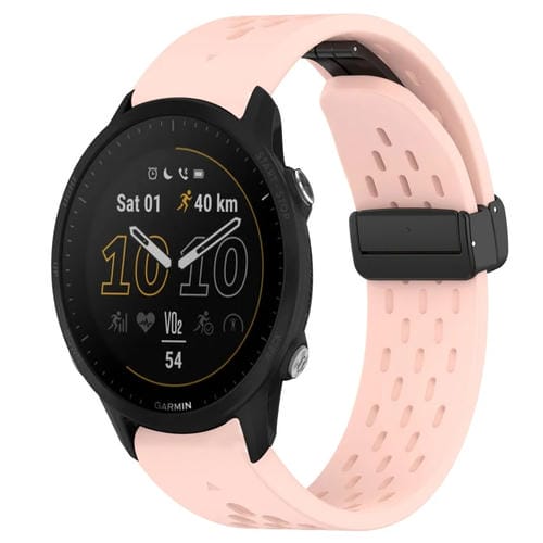 Correa de Reloj de Silicona para Garmin Forerunner 955 con Orificio y Hebilla Plegable de 22mm (Rosa)